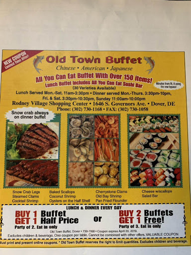 I have been to a lot of chinese buffet in dover area and all i can say that this is one of the cleanest buffet. Some chinese buffets i have been to are messy, but the Old town buffet is clean, spacious and tidy. Kudos for the ambiance. They have varieties of food to choose from. From japanese, chinese, american. its all there. Seafoods are only served during dinner time, although their prices were somewhat up compared before, cant blame them cause seafoods are becoming expensive this days. But totally worth it. Me and my family goes there to eat oysters, sushi & crabs. As for the customer service, i think it was excellent. I have been here for a couple of times and ive noticed that some servers were new and kind of shy, so its not a problem to me if they are not so good with the talking, id rather enjoy my food quietly rather than being disturbed every 5 mins asking how my food was.. so dont be surprised if they arent sociable enough, dont interpret it as being rude nonetheless, they always greet you with a smile and are very much attentive. for all those people who are wondering bout the prices, they are charging $6.75 (excluding the drink) for lunch buffet during weekdays and $12.50 on dinner time. Correct me if im wrong, but thats how i remember it.