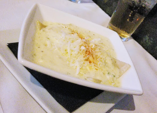 2 shrimp, 2 clams and a lot of mussels & calamari (which are VERY inexpensive compared to real seafood) EVERYTHING IS AN EXTRA CHARGE! We were told having any sause on pasta as a side was extra. Capers are an extra charge on veal picante! You can't even get a discount on a Caesar salad as a sub for the house salad - its a full price charge! We were asked if we had reserv. at 5:50 pm, said no and were told ALL the booths were reserved. So we were seated at a wobbly table in the middle of the dining room getting bumped into by servers as we stared at empty booths all around us. Never again!!!!
