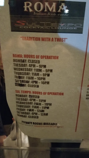 My family and friends tried Roma for the first time ever last night and by this morning half of my party is so sick, they cant even get out of bed. I will NEVER return there again. The service was mediocre, we saw the busboy clearing our plates and refilling our drinks more than the waitress. Because we were a party of 6 (3 adults and 3 kids) they tacked on a 20% gratuity. Not deserved but we just paid it and left because it was getting late. This is not somewhere I will be going again and will be telling friends and family to stay away from it as well.