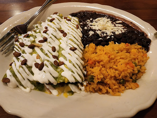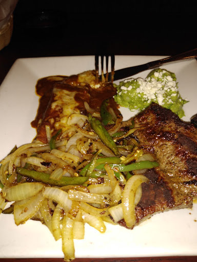 food: I think they have excellent mole (has chocolate in it) and delicious poblano nogata. service: very friendly and prompt atmosphere: strip Mall Mexican vibe but with great murals all around