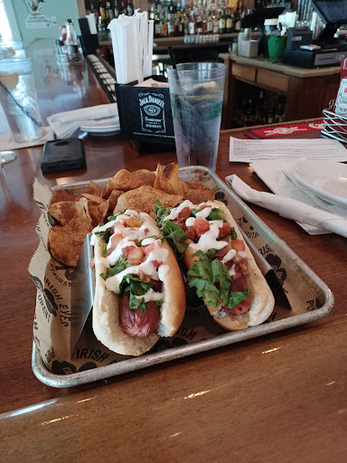 This dockside bar is a great place to grab some delicious drinks or food while watching boats wander in from the bay. I ordered the "pain killer" drink which was a mix of rums and juices. It came in a huge glass and was quite strong. I thought it was a great value for the $10.75 price tag. I ordered the bangers and mash (they do call themselves Irish, after all) and I had mixed feelings about it. The sausages themselves, which are locally made, were great. The giant quarter head of cabbage next to them was not. I was hoping for a little more creativity with the sides, but the cabbage, a pile of mashed potatoes and peas was it. Traditional? Yes. Interesting? Not really. I tried my wifes crab cakes and they tasted super fresh and delicious. My dad got the crab mac and cheese which looked amazing. He finished the whole plate which is something he rarely does. Service was what I expected from a beach town bar. A lot of college students who seemed to have trouble remembering orders and extra requests. Not the worst service ever, but frustrating at times. We left just as the live music was cranking up inside. The band sounded great. I would definitely recommend this place to others. Really great atmosphere with tasty food and drinks.