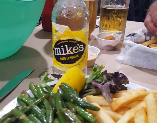 I got fish and chips and my fiancé got shrimp skewers and seasonal veg. My fish were tasteless fish fingers. Not the whole side of fish you get at most places. Also the breading was tasteless. The fries (chips?), were obviously thawed and deep fried. If you are going to call them "chips", they better not be your basic fry. My fiancé got the shrimp skewer with a side of seasonal veg. I had a bite of her shrimp and despite the butter and old bay, it was rather unimpressive. I didnt bother having any of her veg, because they didnt look that great either. This is obviously a place where you want to go to get crabs (yes, I said that). 7 of the 8 groups in our dining area got crabs (we were the eighth). The others got at least a dozen per group. The menu board said the small crabs (6" or so) cost $65 per dozen. The service was friendly but average. The food was overpriced and reheated, but if youre looking for a place to get crabs, this might be your place.