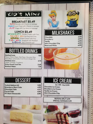 Not fany, but great service and good food prepared simply and well. Hubby had pancakes with crispy bacon. Pancakes were a perfect golden brown and bacon was crispy as requested. I had the Broadway special with eggs over easy, home fries, French toast, and bacon crispy. Home fries were lightly seasoned, brown and crispy just the way I like them. The bacon and eggs were spot-on to the way I like them. Although we didnt order an omelet they had one of the best selection of omelets Ive seen in the area. We plan to go back and get lunch or try soon. If you are looking for a simple breakfast well-prepared, give this place a try. If you want something fancy and more elaborate this is not the place for you.