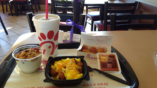 Typical cfa service, but the high chairs and tables were pretty gross, with an 8 month old we didnt want to be caught in a rush. We did visit between the breakfast and lunch rush but it was kind of surprising. Also was given the wrong food... apparently, it was left in the shoot from breakfast... kind of disappointing it all seemed rushed and not up to par for them.