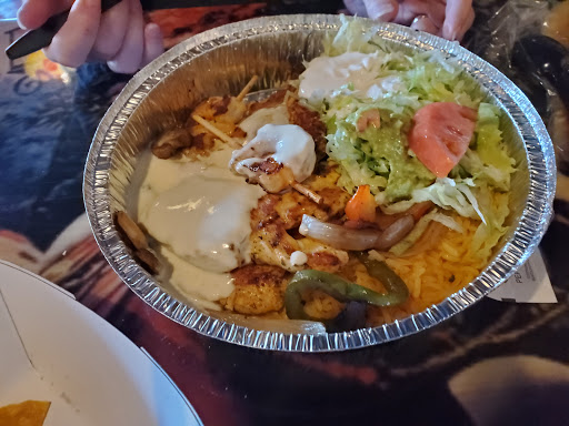 My husband and I love this place. We get the #9 nachos, add a house salad on top, and order a side of rice & beans. Plenty for two! Steak, shrimp, chicken, and all the fixins.