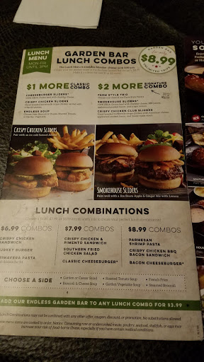 Love the salad bar! The staff and their service is great here! Burgers are very good. I just wish they would buy better cuts of meat (the steaks arent even close to what I buy to cook at home...and I dont mean in serving size; I mean in quality). I also dont like the quality of their pork chops. And I want white meat pork chops without the bone in it.