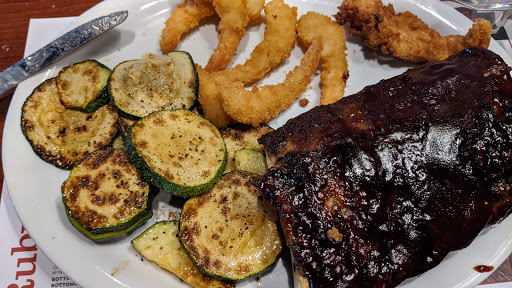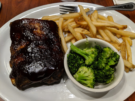 Ribs were excellent and baked potato was fresh. Our waitress during this visit was the best one we have had there. Salad bar was so-so but I didnt go there for the salad bar. Womens bathroom needed a good mopping. My shoes stuck to the floor.