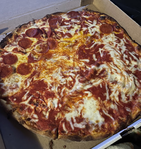 The pizza is NY Style, absolutely delicious when eaten on-site. Take it home in the box and it suffers so eat there. The green beans in marinara sauce is authentic and fabulous. Enjoy the show of watching John spin the pizza dough high above his head, and he is one funny guy. The prices are surprisingly low for food this good.