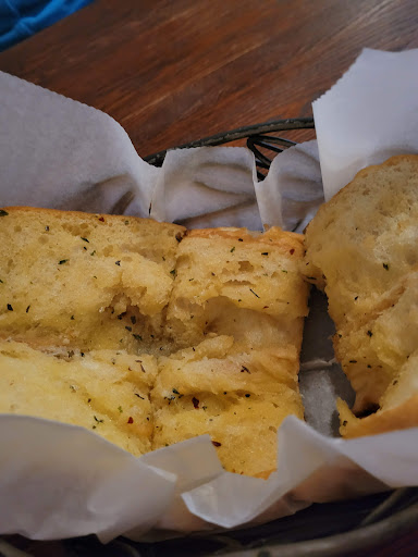 The garlic bread (apparently all you want!) and the salad (parmesan peppercorn dressing) were very good though the salad could have had the water drained a bit better (who wants a demo salad?) The entrees were a little less good. My spaghetti with meat sauce, while good enough, could have used more sauce (the meat was put over the pasta and sauce added over that - seemed an odd way to serve it). One of us had veal franchais and he was disappointed with the veal (too tough to chew, he said). One of us had the childrens fish sandwich and thought it was excellent. One had the chicken imperial and thought the crab was excellent. Another had crab cakes and thought they were alright. We ate inside. The outdoor patio looks terrific.