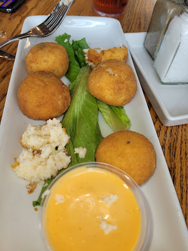 Great food at good prices--I had their crabcake and we shared two of their desserts--carrot cake and caramel bread pudding. The bread pudding was fantastic, and they do a great job with presentation on their dishes. The indoor dining area feels cozy and there is a covered outdoor seating area in the back. Atmosphere is very nice! Our only complaint was that our initial drinks and the main dishes were a little slow in coming.