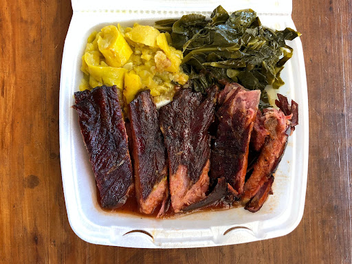 Ribs were rather rough yet still quite tasty. Sides were also pretty good. The service was very good and friendly! It was a cozy atmosphere inside.