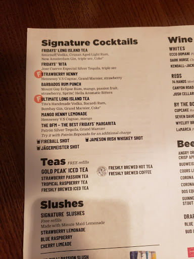 Long wait to get food and drinks but when I finally did get it , it was good. Maybe it was just the location I went to but I usually have a better experience. Some of the food was hard,over cooked and dry like it was just reheated. I usually go to the TGI Fridays farther from my house but couldnt since I was with a group of people and this location was more convenient. We agreed next time well just drive further and go to the other TGI Fridays, better service and better food is with the long drive.