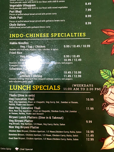 The food and service is really good. There is a vast variety of food such as indo-Chinese, north and South Indian, and the biryanis are amazing. This is the best restaurant with the best food I have eaten so far in Delaware.