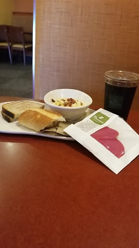 Large Panera right on Main Street. Be prepared to pay for parking, either at the meters out front or the for-pay lot in the back. Like most Panera restaurants, tables can be hard to come by due to all the folks who treat the booths as their home-office.