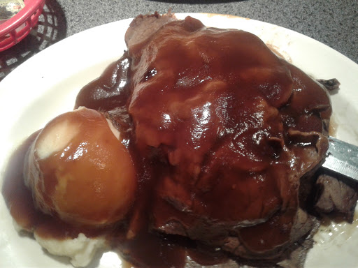 We arrived in the middle of torrential rain. As soon as we walked in, one of the servers said to the hostess something about they couldnt do this it was too much. She was very rude to the hostess, say nothing about acting that way in front of customers. We asked for a table for 4 and the server once again was rude and said no. The hostess told us it was at least a 20 min wait and emphasised the AT LEAST several times. Half the tables in this place were empty. She explained that a 13 top just sat down and they couldnt get to us. Im not saying we should have been sat but things should have been handled much more professionally. Go to IHOP, thats what we did. Service at IHOP was exceptional and they were staffed to handle more than 13 people at a time.