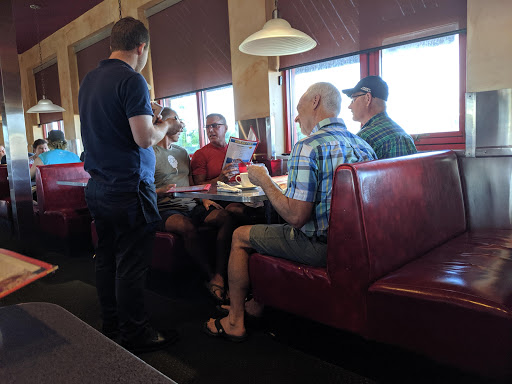 We stopped on our way home around 11:30 am on a Sunday and it was packed (usually a good sign right?), but it was truly pretty awful. My advice: turn around and go back to IHOP. The food came out very slow (isnt a diner supposed to be quick?) and was poor - the bacon was a weird brownish color (how do you screw up bacon?), the omelet used canned mushrooms and the cheese was nonexistent so it had little to odd flavor. The hash browns were doused in grease. The waffle was decent and the only redeeming item however the strawberries served to us had no joke, 6 "top" slices with the green stem showing so obviously we didnt eat those pieces. I lined them up on the plate and when the server came to clear, she said "I see the waffle was delicious" and I couldnt tell if she was being sarcastic or not. Like I said, I would NOT recommend this place at all. We went in saying, who can screw up a diner breakfast? Well, they did.