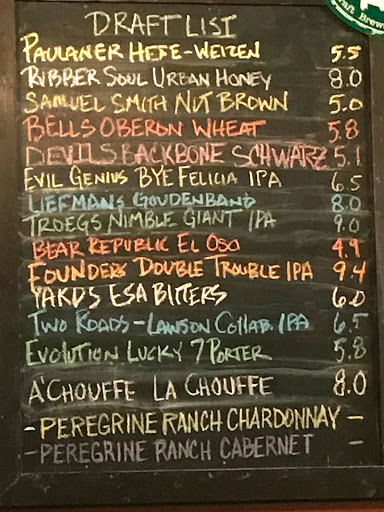 Great beer selection anywhere this part of DE. Plenty of local drafts and Left Coast offerings too. Service is friendly and attentive. Menu has typical favorites including burgers and whatnot, but interesting twists as well. Red curry mussels were quite good. Although I didnt try it, the "a Pig, a Duck, and a Cow walk into a bar ..." sandwich looked particularly interesting. Adding this to my list of must-visit DE favorites.