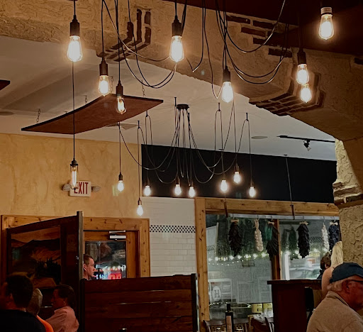 Great find, was not expecting to see a full deli inside this restaurant. They also had a nice bar area and a wood fired pizza oven. We had salads and shared a pizza, everything was fresh and delicious. Nice selection of wines plus a full bar and several beers on tap. The place was very busy but all of the staff seemed very friendly. The deli had some great selections.