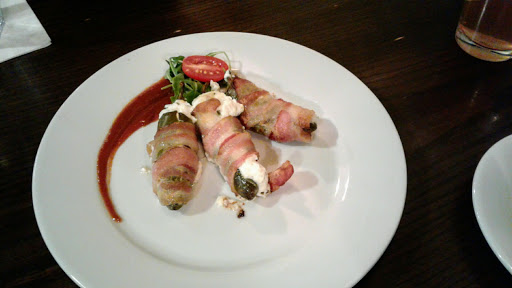 Absolutely some of the best flavorful food weve had... flight of beer-different and diverse; strawberry salad-holy moly, it was amazing and very pleading to the taste buds. The goat cheese was super creamy, the pickled rhubarb started with a sweet taste but then turned sour. Brisket and bleu cheese spring rolls-amazing combination of food to create a wonderful taste. Steak tacos-The steak was wonderfully tasty and tender. The sauce has a bit of taste and is perfect for topping off the tacos.