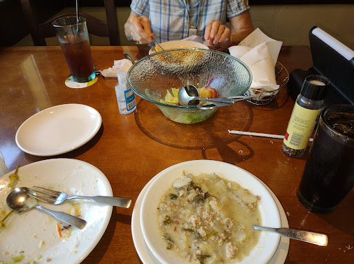 This Olive Garden is in a restaurant row on the southbound side of Concord Pike. If youre going northbound, left-turn access is via a traffic light intersection at the start of the restaurant row. Ive been to this restaurant row a number of times and Ive never had a problem with parking. Even at peak dining hours, you can always find a parking space at the far edge of the lot and because of the size and shape of the lot, theres not a single spot here that is too long of a walk from the restaurant. I must confess I havent been to an Olive Garden for quite a long time, not because I didnt like it but because Id assumed it was too upscale for me. However, they send out coupons and I noticed that their "pronto" lunch menu is reasonably priced. Service was fantastic. My server was super-attentive, paced the meal nicely, and anticipated some of my requests. I had the unlimited salad, but the initial salad bowl was so huge that I didnt need to ask for a second helping. The veggies seemed fresh and crisp. I only wish there was a choice of dressing other than Italian. The pumpkin cheesecake was very good too. The only part of the meal that I thought was mediocre was the main entree itself. I didnt think the Italian meatball breadstick sandwich was that great, although Im not sure if I should have expected any better. Anyway, this restaurant turned out better than I thought and is worth a revisit, although perhaps Ill wait until after renovations are complete. The exterior looks rather unfinished now, although construction didnt seem to affect the dining area.