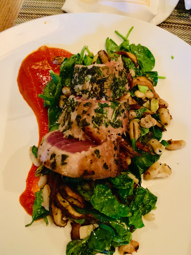 First time here, and the food was excellent. We started with the fried calamari (romesco sauce, aioli). Calamari was perfectly prepped and cooked. Very tender and flavorful. Then we got some plates to share for our dinner: a soppressata pizza, rapini with cannellini beans, and the pork tortelloni. All were outstanding! Then we tried four desserts: pistachio gelato, tiramisu, spumoni, and carrot cake. All were excellent, although the spumoni was the standout here. Lavazza espresso was on point. Only reason Im holding back a star was the service. Not that it was that bad, but it wasnt up to par with the atmosphere, quality of food, etc. Our server was painfully slow in bringing every course/drink/ etc. As this was our first trip, Im not sure if the very slow service is par for course. It would seem not, as the other servers seemed to be on the ball. We will be back to give Capers & Lemons another chance, and I will update on the service at that time.