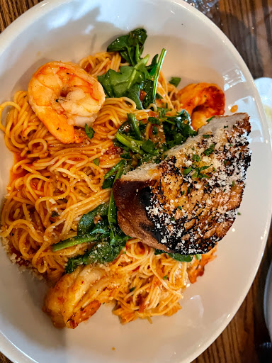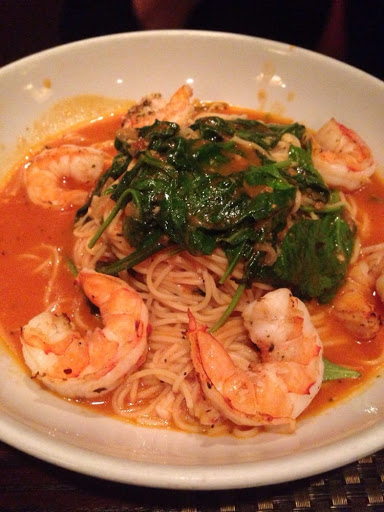 I went here on a Sunday evening with my boyfriend. He ordered the entree size of the Eggplant "Lasagna." Before ordering, he asked our waitress what the difference was between the appetizer size and the entree size, and the waitress held her hands up to show how big the lasagnas were, and said with the entree you get two plus a side of spinach. When his entree came back, we almost sent it back because it was only one piece. Nope, it was indeed two square probably 2.5inch x 2.5inch pieces of lasagna. We could not believe how small his dinner was. I ordered the Cavatelli Cacciatore which is described on the menu as "braised chicken, mushrooms, roasted pepper, onions, parmigiano." It came and I began eating it, and quickly realized it had NO chicken in it. How do you forget the chicken in a chicken dish?! I folded my hands and rested my chin on my hands to show I was not eating, and made eye contact with our waitress THREE TIMES before she finally came back over to see how everything was. In that time, my boyfriend had to completely stop eating because he would have been done his tiny dinner way before I even got mine. The manager came out with my fixed dinner, which was a noticeably smaller portion than the first time around, and said sorry. I ate about half and asked for the rest in a to-go box because my boyfriend had finished his then-cold dinner way before I could. Our waitress and the manager were very pleasant. I understand that mistakes are made, thats fine. Im not a terror - I laughed it off and got it fixed. My problem lies in 1. how much the just-ok food cost (seriously, I wouldnt say this is any better than Olive Garden, its just not as oily), and 2. We werent offered a free dessert, a discount, or anything, for having my meal be so messed up. I can NOT believe we paid $18 for the Eggplant "Lasagna" and $19 for my Cavatelli Cacciatore. We wont be returning.