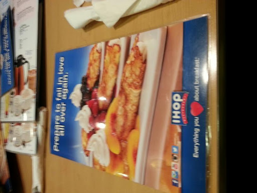 This IHOP is apperently good but they need to change the dishes very soon.you can see the plates have lots of crack on it.If somebody is to a restaurant to dine the atmosphere should b like a restaurant only where a person can relax.Paying money for dining and getting the same home type feeling is not accepted from IHOP atleast.