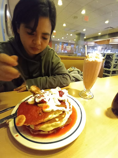 Ill start by saying that Im not a huge fan of chain breakfast places and IHOP is no exception. However, I have to say that this is the cleanest and nicest one Ive ever been to. The staff is great and honestly the food is really good. I was surprised and our family keeps coming back!