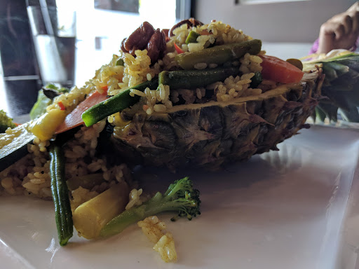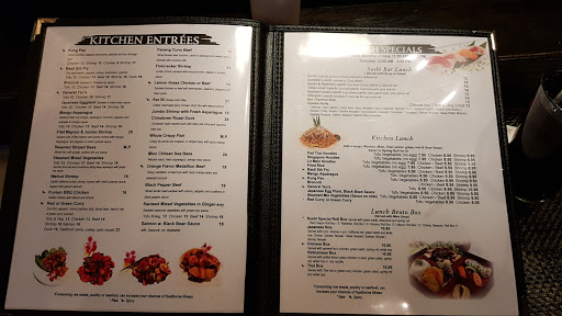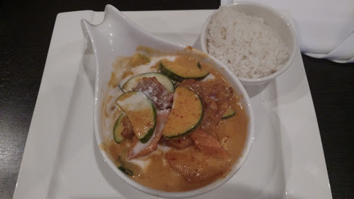 My wife and I really enjoyed dinner at this place. I found the Japanese side of the menu to be excellent, but the thai side (green curry) to be only good, hence the food rating above. By excellent I mean the biggest chunk of tuna I have ever seen in a tuna avocado roll, yum! Also, the seaweed salad was perfectly seasoned. The coconut shrimp was far and the away the best we have had in recent memory. I think if you try this place you will like it. We will be back next time we are in the area.
