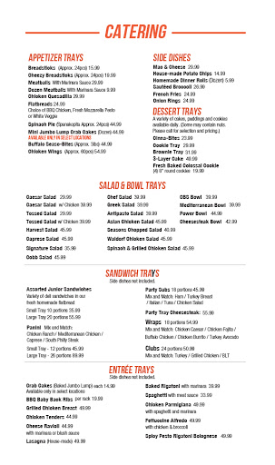 Antipasto salad was good. Dessert Brad sticks are delicious. Pizza needed more sauce.