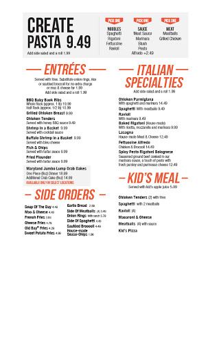Forget all the older reviews. A few months ago the restaurant was remodeled into what is little more than a tiny takeout pizza place with a few tables. The rest of the restaurants former space was converted into rental space and is occupied by various retail establishments. Dont bother going there. There are several other better Italian restaurants on Concord Pike.