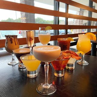 Amazing food and drinks!! We had the brunch... the steak and eggs(I subbed in the cheese fondue ), the potatos Obrien were served perfectly crisp, steak was tender, all the flavors came together like the 96 dream team and Jordan was the Fondue. The pulled pork sandwich was decadent. Shrimps and grits was delicious but was lacking Shrimps. The drinks are a star by themselves. Well balanced, smooth going down, and not skimpy on the alcohol.