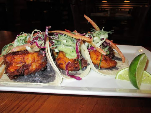 Good happy hour specials. Varying menu options from sandwiches and tacos to steaks. Nice atmosphere. Separate bar and dining room. Slightly upscale dining. Seems many business people meet here after work. Sits back in a store front so it doesnt look like much from the exterior. Modern mix of industrial and cabin-esque decor.