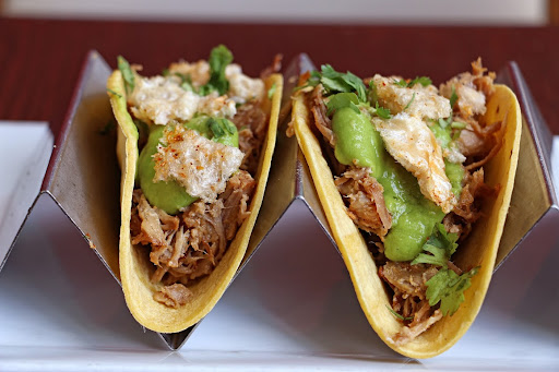 I tend to be really stingy with my 5 star ratings, but here one is. Honestly, I debated between 4 and 5, but I happily rounded up because of the reasonable price. This was just a GREAT meal. We ate here on a Sunday night when everything was quiet and serene. We were seated outside, and warm, fresh chips were brought to us with some nice tomato-y salsa. The chips and salsa were free and delicious; Ill admit that we asked for a second order! This is a big one for me as I feel that too often the free tortilla chips at Mexican restaurants are stale or just bad. These were really nice. For the main, I got two taco orders (each order came with two small tacos: steak with kimchi, baja fish) and MM MM MMed my way right through them. The tacos were small but the fillings were delicious and portioned generously. I truly loved every nite. My husband, meanwhile, still somehow managed to make me jealous with his chicken entree. It was absolutely outstanding, and I asked for multiple tastes and then each time said, "What is that flavor? How did they do that?!" We didnt get drinks or dessert, and so cant speak to that, but between the awesome food, the fine price (we were out for about $45, including tax and tip), and the nice location, I have no doubt that well be back.
