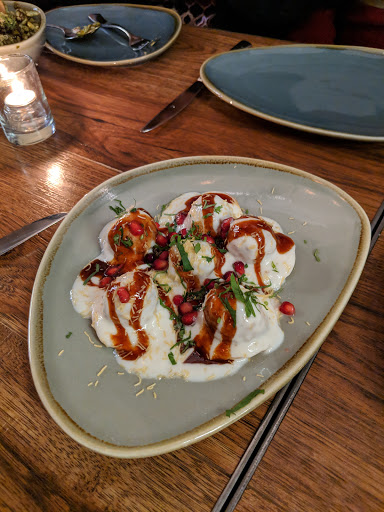 Ive been eyeing this restaurant for some time now because its the sister restaurant of Rasika. You must book 1-2 months in advance or expect to sit and dine at the bar. Luckily we forgot the memo and walked right to the bar. Restaurant is pretty small and looks like it seats around 30-40 people. There is a wood burning oven in the corner with a food prep station. Youll see fresh naan, sliders and other small dishes come out from here. Everything else is cooked in the back kitchen. We had the Golgappa, spinach naan, lamb kathi, sticky pudding for dessert and a Curried away cocktail. Golgappa is one of my favorite Indian dishes and Im glad they were able to put an interesting spin on it with some avocado. The spinach naan was perfect and the lamb kathi kept us wanting more. The sticky pudding had a nice molten of chocolate in the middle with a sweet caramel glaze around it. The Curried away cocktail had a stronger ginger taste. We enjoyed it because of the interesting egg yolk and house gin in it. All in all we were very pleased with our service and food. Place is a bit tight, but we didnt feel squished. The staff, host and servers were friendly and you can tell its a well run establishment. There is plenty of neighborhood and street parking. Will definitely be back to try the corn rice pancake, lamb kebab and pao Bhaji