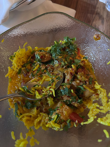 Excellent service, excellent food, excellent vintage Bollywood videos. The crab idyappam, Goan pork, and shrimp bezule are phenomenal, but we didnt have a single thing not worth eating. Non-listed cocktails could be a bit better, but thats not why I came. Must try.