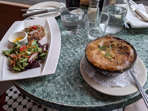 A very traditional French Bistro. The food is exactly on point for the type of place that it is, French bistro fare, done well and not in a haute cuisine pretense. Pates, foie gras, mussels, cassoulet, duck confit (yum) all staple French classics. All done very well, and nicely portioned and presented in the traditional way. There are good wines by the glass or carafe and the waitstaff is just as happy to speak to you in French or English. The menu prices are fitting with the area (duPont circle neighborhood) and you can get stuck between the menu choices if you like this kind of food. While working with some French colleagues down there, I was happy to hear how much they all enjoyed this taste of home. I will definitely return and would recommend to others.