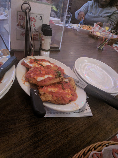We went to dinner at 8:30 PM on a Friday night and were seated within 10 minutes. The booth table was.fine but the bench cover was badly torn. We received our drinks quickly and placed our order for appetizers and entrees soon after. Calamari and cheese sticks arrived within a reasonable amount of time and were just average in taste. Entrees took a little longer. Caesar salad with chicken first. The Romain lettuce was somewhat wilted and some of the chicken was highly peppered which I did not expect nor like. My children liked the baked ziti, the meatballs were just ok and my husband liked the pepperoni pizza but it was very small, supposed to feed 2 to 3 people. The waiter was nice but always in a big hurry. I gave the restaurant 2 stars because the food was over priced, seating poor and the food not good enough to make me return.