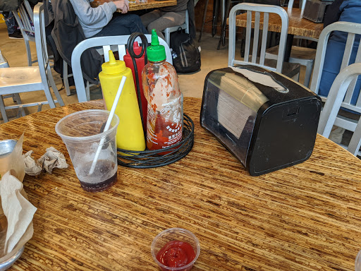 Extremeley popular place for a burger, though I do not know why. They desperately tried to mask the vastly inferior quality burger with an oversaturation of "condiments" of my choosing. The selection of condiments is extensive, though the quality of these condiments is bland at best. Once each burger is soaked in the condiment and the result is a soggy drenched bun that barely distracts you from a burger that tastes like a wet noodle fresh out of the pot. My wife is not a burger person, so she ordered somthing called a Haight Ashbury burger - a vegetarian alternate. It was frozen and equally doused in unapetizing condements. At least the shakes were quite good.