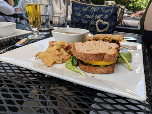 Ich liebe Bratwurst und Bier. I have been here a few times over the years to get my German food fix. The food is prepared nicely and is very filling. I recommend getting a sandwich at Cafe Berlin. The sandwiches come with potato salad and soup. There is plenty of food to eat and you will leave stuffed! Today I got the bratwurst sandwich. The sandwich comes with 1 bratwurst covered in sauerkraut and mustard. The bread of the sandwich is made out of pretzel. The staff was friendly and were helpful with what to choose on the beer menu. The beer menu is vast and there are beers on draft and bottled. When you come through the entrance of the restaurant door, remember to use the door knob!