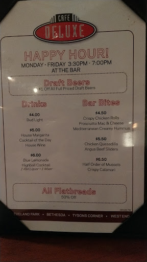 Cafe Deluxe in Cleveland Park was open for July 4th. We had a lovely waitress named Lena. Great service and a delicious July 4 burger. At some point during the lunch we noticed a line forming outside....an older group had suddenly converged, with some wearing kilts. A sudden influx of customers meant the staff and kitchen were slammed. Management and staff carried on professionally and promptly doing their best to feed the teeming mass. A hearty Well Done is deserved by Cafe DELUXE!!
