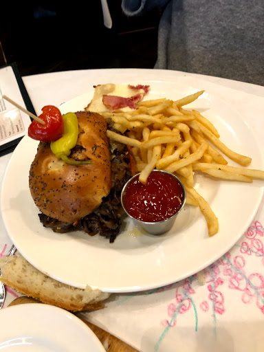 The food was okay here. I was annoyed at the waitress at this resturant, she was very rude to my table. I think she thought we were poor since we were all spliting meals and drinking water, but it was a lunch time and we a table of four who just wanted a small bite. The food was fantastic though. Croque Monsieur and the Grilled Chicken sandwich we ordered and everything was good. I loved the look of the resturant, it was very pretty inside.
