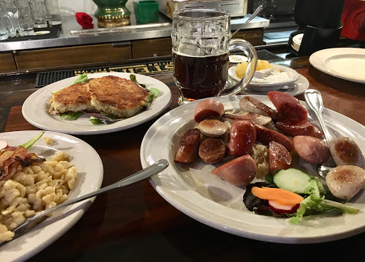 Potatoe salad was cold along with some other cold pasta served with and Veiennese beef stew type of dish.... the gravy made it all eatable and the beef was pretty tender. Fruit flies flying around and hanging on the walls was a BIG BIG issue!! One particular fly stood on the wall behind me my entire visit. Waiter was pretty nice and helpful ... told him abt the flies and he said a delivery had come in earlier that day and the guys left door open or something. Good beer though!