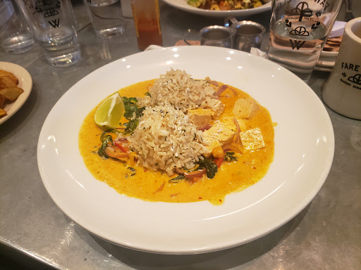 Disappointed is putting it mildly. I came to Fare Well for the first time today and it will surely be the last. When we first walked in we were greeted by the host who was very happy and gave us all a nice smile and a welcome into their restaurant (This is the only nice thing I have to say). She told us it would be a 30 minutes until we were seated so I figured why not have a drink while we wait. I asked the bartender if he could make me a mimosa and he promptly replied no and gave me a cocktail list. I understand if you dont have the components to make a drink but there is a much more polite way you can go about speaking to a guest in your restaurant. I ended up ordering a Hendrix and tonic and asked the bartender if he could garnish it with a cucumber, which is delicious since Hendrix gin is distilled with cucumber and rose water. I got my drink, dropped the "cucumber" in and started sipping. I started to notice an odd flavor I hadnt had before. I pull out the "cucumber" to take a bite and to my surprise its a fat slice of zucchini... Utter disappointment. We finally were seated and our waiter promptly came over and asked us if we were ready to order. There was no hello or warm welcoming from him. He seemed angry and we felt that we were being rushed after standing up waiting for 30 minutes. My stomach wasnt feeling that well and I asked him if he could check with the kitchen if they could just make me a plate of plain potatoes since they had potatoes on other dishes I didnt think it would be to much of a hassle. Especially because all you need to do is put potatoes in a pan then put them on a plate. Simple enough right? Just like the bartender he said "No" , he didnt even take the one minute to go back and ask. His follow up was "are you ready to order". I told him no and to give us a few minutes. He came back after we flagged him down. I decided to just have coffee. The food came out about 25 minutes later. I tried a bite of my friends Chilaquiles Verde and was happy I didnt order. It lacked flavor and spice and the tortilla chips were soggy. So from the front of the house to the back it was terrible. Also where are the managers?? All I saw were a bunch of servers running around like a bunch of chickens with their heads cut off. Food runners asking tables if it was their food they were carrying. Do you not have table numbers and seat positions?? What a joke. I ended up ordering brunch to go from another restaurant and took it home with me. You couldnt pay me to go back here. The only thing that was nice was the warm hearted hostess who welcomed us when we came and wished us a good day on the way out.