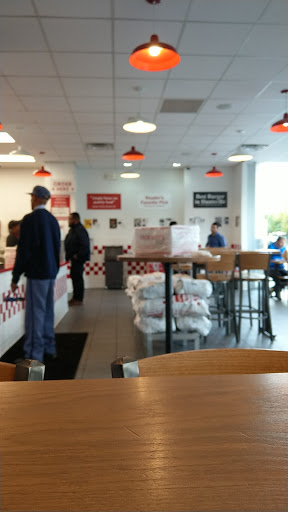There is nothing fancy about 5 Guys, but the burgers are fresh as they cook them as your wait and they are made with our choice of topping. As I am from the west coast and travel to the DC area, I always make it a point to pick up burger and frys when Im in town. They are that good. Where else can you eat a hand full of peanuts as they cook your food. Oh, and before I forget, order the reg size fry, unless are sharing a large. They put your burger in the sack first then add a cup and filled the sack with frys. Their only missing milk shakes. But that does not take away from a GREAT burger!