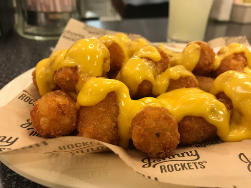 For those who like their fast food with a heavy dose of nostalgia and a dancing waiter or two, there is Johnny Rockets. Their menu is surprisingly diverse - reminiscent of an IHOP - but its the burgers, shakes, and fries that most people order. Their grill cooks have to go through special training in the proper way to cook a Johnny Rockets burger, but that still doesnt make them something to write home about. Lets be honest, you dont go here for the food, you go for the kitschy 50s feel and maltshop atmosphere. And THAT is what JR has in spades.
