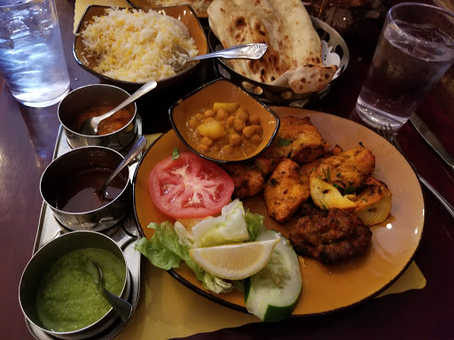 This place definitely hit my eating out rotation due to the tasty Indian food here. They start you with 2 dipping sauces (one green, one red). The green one is spicy while the red has a nice contrast of sweet. Ive ordered the chicken tikka masala, lamb biryani, saag paneer and garlic naan. Everything is delicious and really hits the spot if you have a need for indian food. The chicken tikka and biryani are bursting with a combination of different spices and flavors while the saag paneer has more of a subtle, soft taste. I really need to order the saag paneer without the other items as I always tend to like strong flavors more and not enjoy the saag paneer as much. As for the naan, the garlic adds a nice flavor and really enjoy eating with with the chicken tikka masala.
