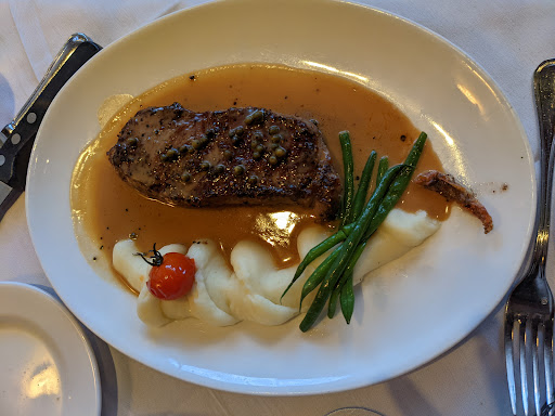 Very good service, but very mediocre food. Had the duck which must have been shot over a lake of sauce because it was drowning in sauce. Could not really taste the duck because The sauce was so overwhelming. Lobster bisque soup, was also very mediocre. Entrées ran from $21 to over $30. For these kinds of prices, I expect the food to be much, much better.