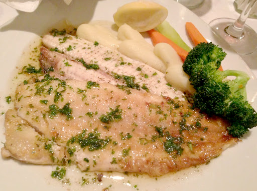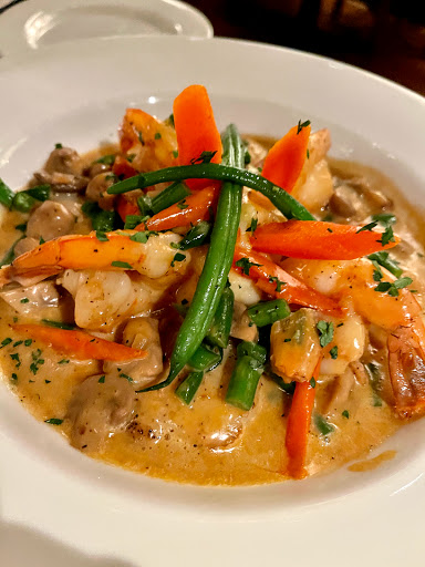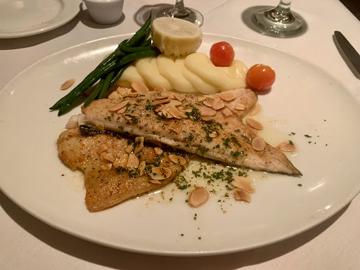 Wed met an associate here for dinner and were not impressed. It was difficult locating the Escargots en Coquille in the serving dish within the tablespoon of parsley although once found were ok but not bursting with flavor as escargots should. Id had the Moules Mariniere and they were more bland than Ive ever had before - I would not order these again. Our associate (when not attempting to rub my foot under the table) had the Dover Sole and I much prefer Winter Flounder from the Barnegat Bay. My Significant Other had the special, Grouper, and I have to say that was outstanding - this is highly recommended. I could not get enough of this and he was kind enough to share this with me and for that I am grateful. So he and I did manage to share a nice dinner in spite of the other shortcomings. We would not return although the ambiance is pleasant, aesthetically cordial and warm. The service, however, is excellent.