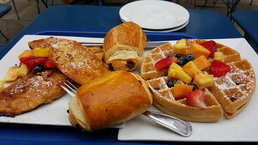 This place is a joke. It looked cute, the pastries looked promising. I ordered breakfast including a croissant. 20 minutes later, I inquired about the food, found out that they had never bother to tell the cook to make it (they just took our money and stared at the wall I guess). I asked for the croissant that had been sitting on the counter, THEN they asked if it should be warmed up Ok We wanted to leave and asked for our money back. They promised they would get it out quickly. Another mistake. They microwaved a ham sandwich with a pile of cheese on top and still cold ham inside. Not broiled, no bechamel, nothing a true croque monsieur should have. The waffle was barely cooked, corn syrup instead of real maple. Even worse? The water dispenser had algae in it! Never an apology from clearly useless staff.